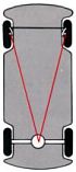 Nello schema, entrambe le ruote anteriori "tirano" la macchina di lato, anche se l'effetto totale è nullo, dal momento che le forze in gioco sono uguali ed opposte: in teoria la macchina non sbanda né a destra né a sinistra, ma questa è una situazione instabile.