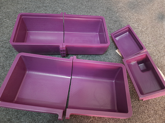 Laminato tutto lasciamo catalizzare per 12/24 ore a seconda della temperatura dell'ambiente e quindi togliamo i pezzi dagli stampi. Se la cera e il polivinilico sono stati dati bene non avrete grosse difficoltà far uscire il pezzo. Un po' più complicato farlo uscire dallo stampo dello Uat che ha una parte più profonda. Aiutatevi con una spatolina di plastica e pian piano staccate prima le pareti e poi dovrebbe uscire tutto il pezzo.