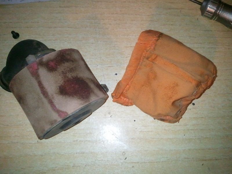 togliendo la seconda spugna ho potuto verificare un leggero annerimento nella parte interna, sintomo che "un qualcosa era riuscito a passare anche la seconda" pochissimo ma era passato, ovviamente particelle piccolissime strafiltrate ma purtroppo sono quei micropassaggi di terra che non ti fanno grippare, non ti sabbiano il pistone od il cielo, ma comunque fungono da smerigliamento riducendo la vita dell'accoppiamento (accidenti!!!!!!!)