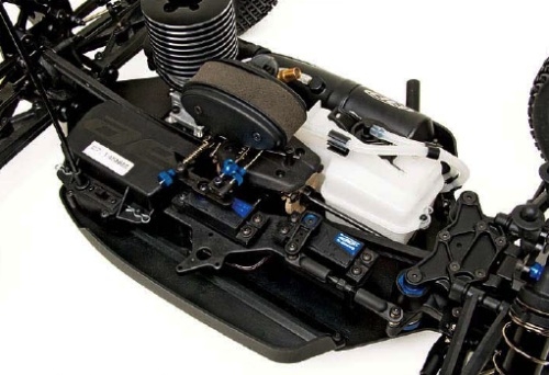 Big Bore) vengono di scatola già riempiti dei migliori fluidi per ottenere dal Truggy le massime prestazioni. La trasmissione è completa di cuscinetti a sfera con un rapporto di 4.30:1 mentre il telaio è realizzato in alluminio anodizzato 7075 nero.