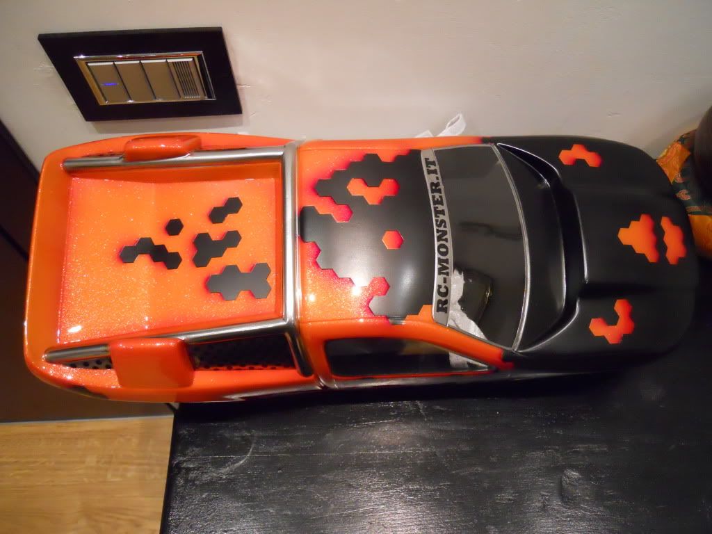 La particolarità sta nel contrasto tra l'arancione candy perlato cangiante con la grafica nera opaca. Sono diventato matto a far le foto in quanto la fotocamera non sapeva più che pesci prendere con quel colore particolarissimo.