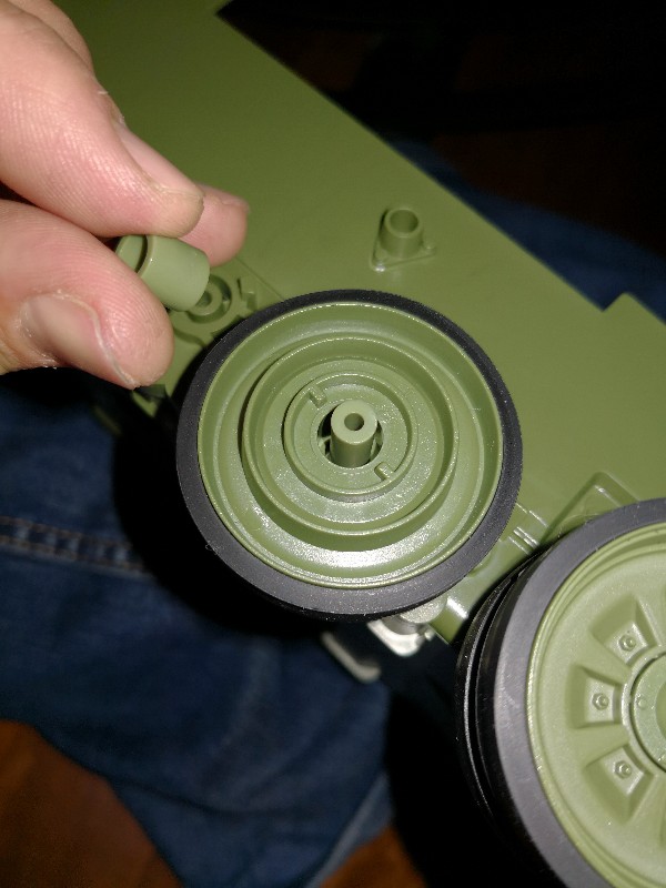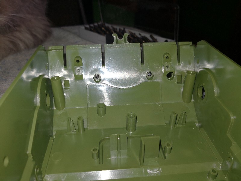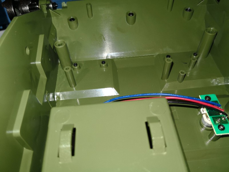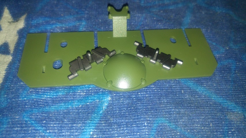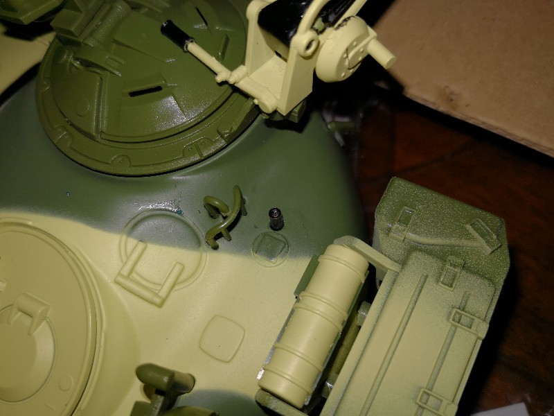 Ora prendiamo la torretta, smontiamo il sistema del cannone e, sotto di esso, dobbiamo montare il supporto dell'antenna.