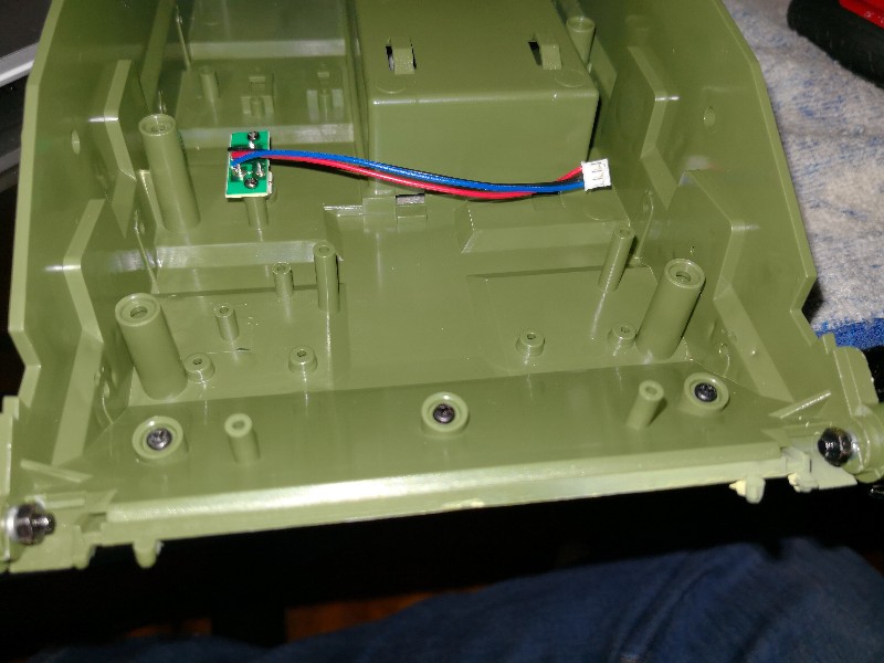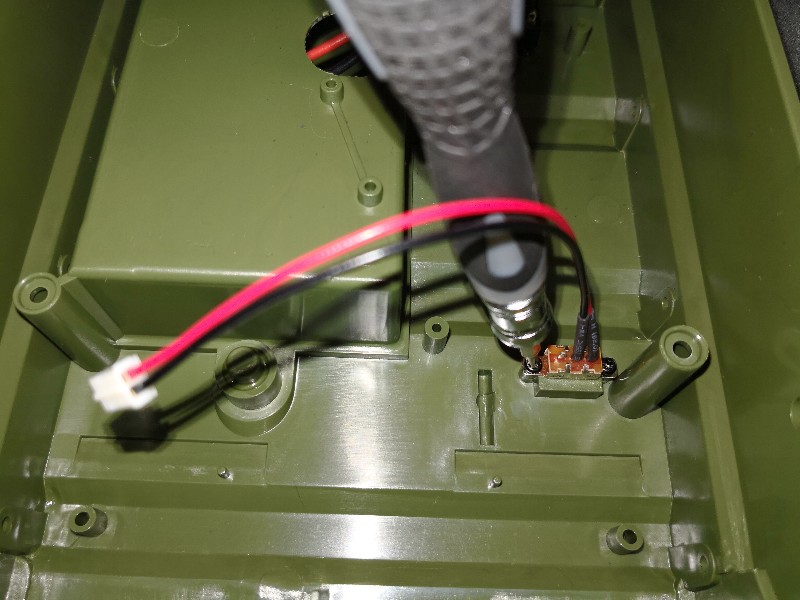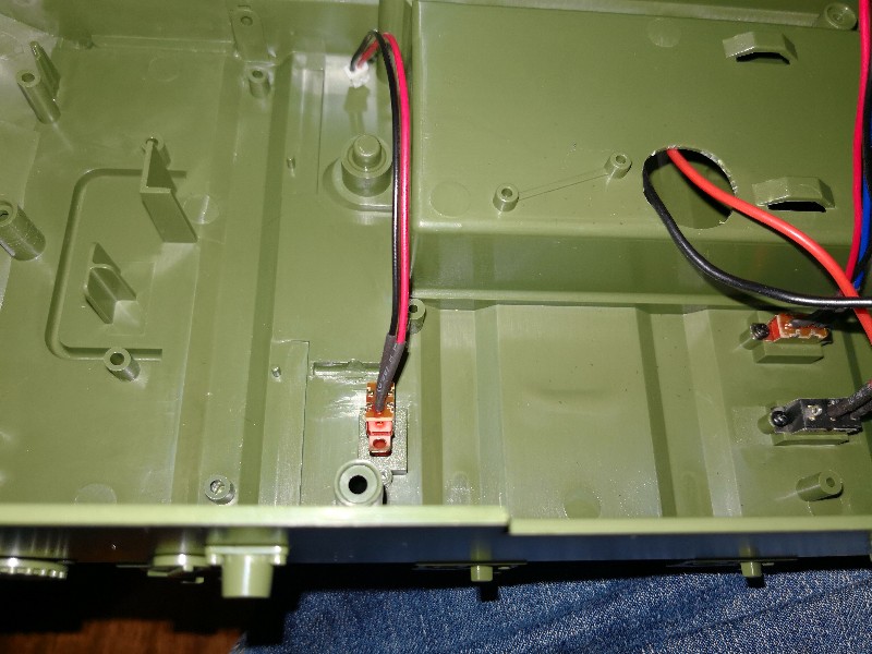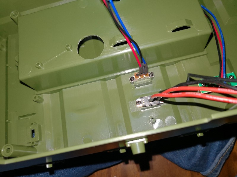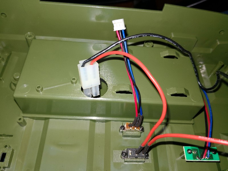 Prendiamo il connettore di alimentazione (mod. tamiya... Che non apprezzo particolarmente ma idoneo per le basse correnti delle batterie NiMh fornite) e facciamolo passare nel vano batterie attraverso il foro più grande