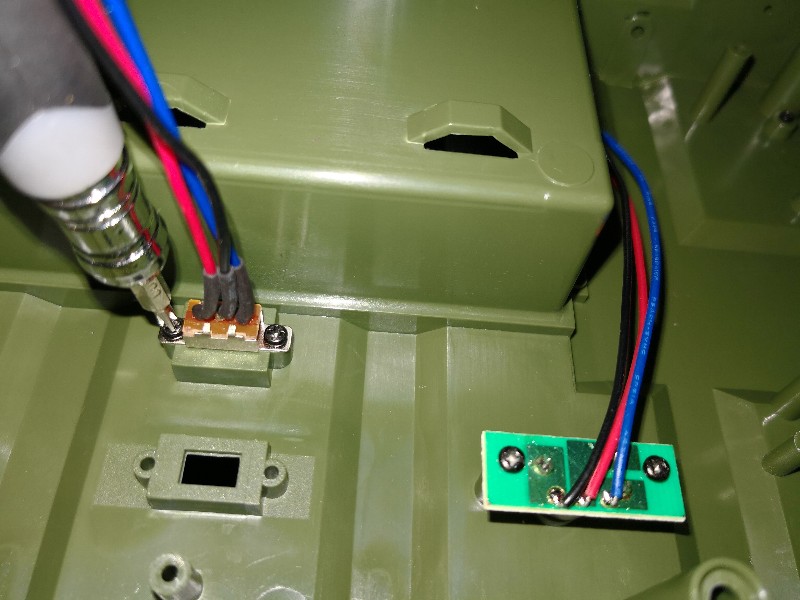 Prendiamo l'interruttore e poniamolo nel foro accanto al precedente. Guardando lo scafo sotto, ho lasciato il contatto non collegato rivoto verso la posizione off e fissiamolo con le viti