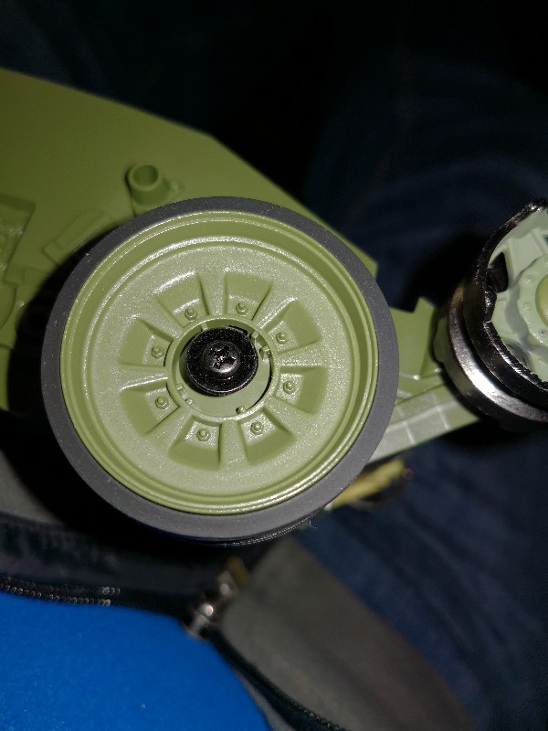Inseriamo la ruota esterna, agganchendola a quella interna tramite le apposite scanalature e poi fissiamo il tutto con la vite + rondella che abbiamo usato per filettare il foro