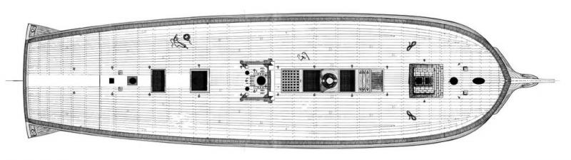 guarda come i tavolati curvano e si rastremano verso prua e poppa(e nota anche la larghezza reale delle tavole,sui piani commerciali del tutto falsata):