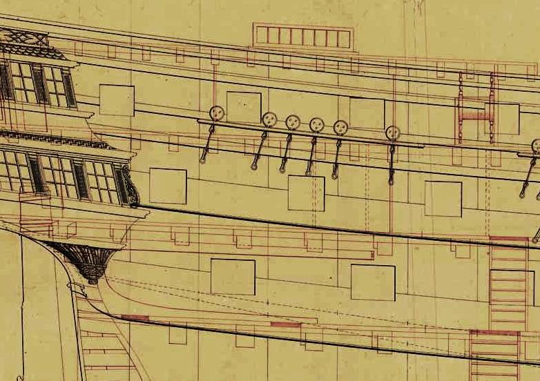 ( ma verificate pure tutti i piani originali (del 700,attenzione...nessuno posti piani dell'800 con i ponti ormai praticamente rettilinei,eh?...non ci provate,io sono stato chiaro) vedrete che non esiste un solo piano uno solo che presenti,quando la pendenza del ponte è marcata,(quindi non la victory o la constitution,la constellation,il trincomalee...ecc..) verso poppa sabordi rettangolari con le soglie disposte a scaletta)