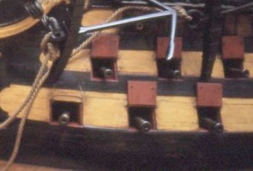 in realtà nel vascelli (danesi e svedesi della prima metà del XVII sec. talvolta(vedi i piani originali che posto,5° e 6° foto)si preferiva inclinare(come nel wasa)tutto il sabordo pur conservandone la forma rettangolare ed indebolendo le costole che lo includevano pur di conservare il parallelismo delle soglie al ponte(il che peraltro dimostra che in alcun caso le soglie erano orizzontali andando a configurare una scaletta).