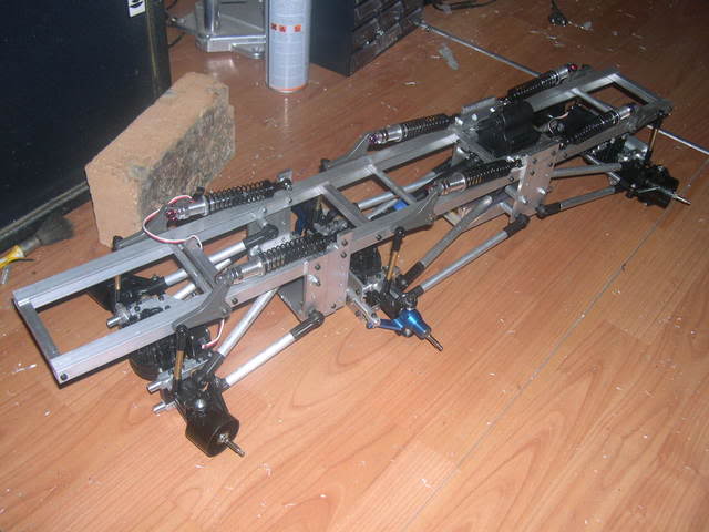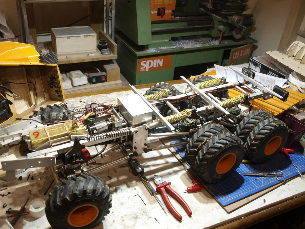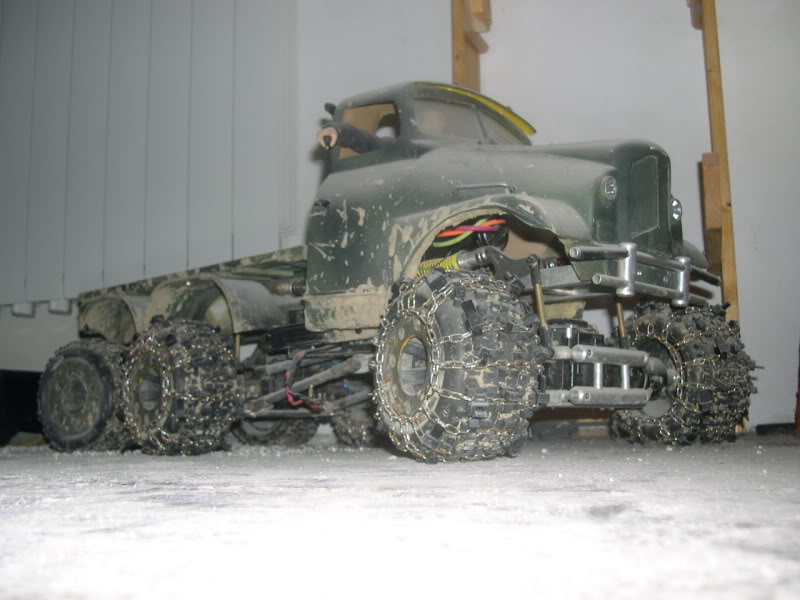 è un camion di 9kg basato su ponti tamiya txt-1 e una trasmissione traxxas e-maxx primo tipo con ingranaggi di metallo e circa 120 pezzi fatti a mano.