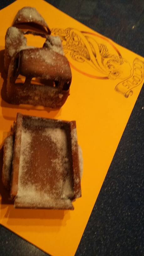 Steso mano di ruggine in maniera uniforme e sfumato da scuro a chiaro con 5 tonalità. Le ultime due le ho spruzzate con una "paglietta " per lavare i piatti . Acqua e sale , come se piovesse . Vorrei ottenere una patina rusty , più accentuata e " diversa dal precedente modellino