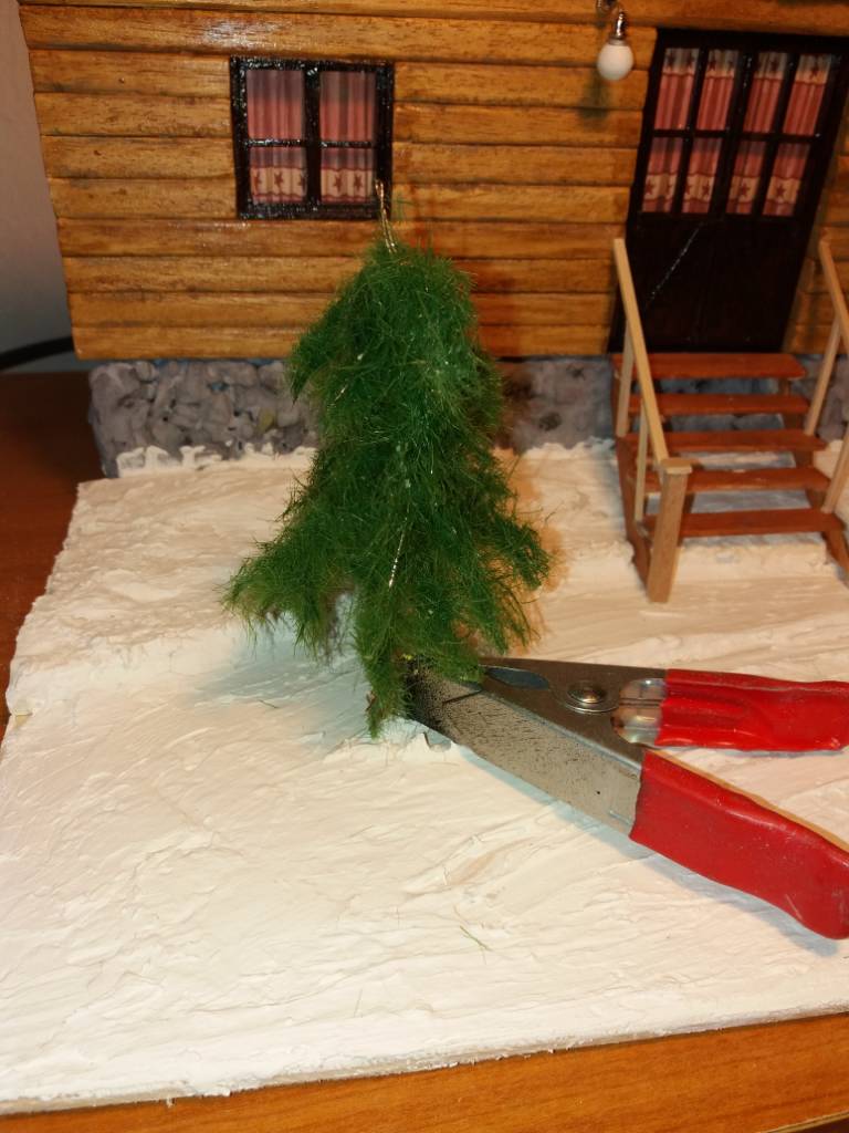 Realizzato la scala di accesso all'hotel. Devo ancora trattare il legno. Poi un albero e l'asta della bandiera . Tra un po' farò nevicare. Sorry per le foto con luce artificiale, le giornate sono sempre più corte.