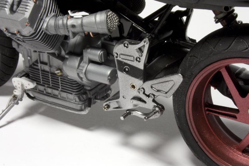 Già che ero in ballo con il nero, ho fatto anche telaio e le staffe delle pedane (polished aluminium alclad).