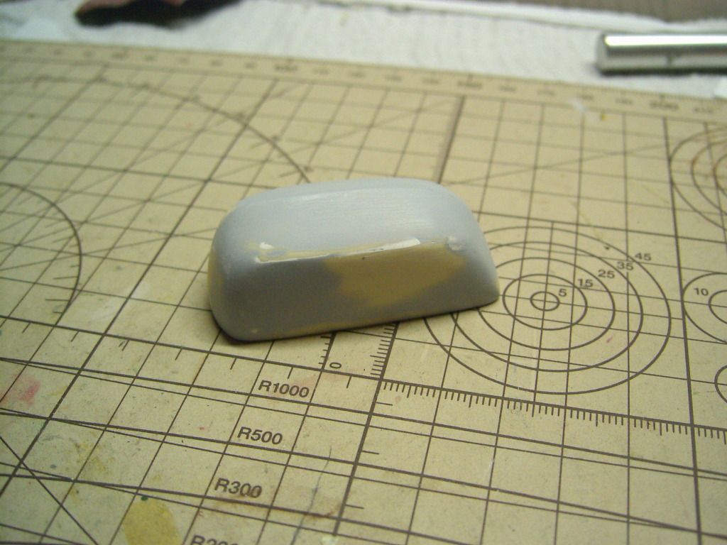 dopo aver riscontrato gli identici problemi di gionc con il prototipo fatto con le dime in plastica.ho provveduto a clonarlo.così è molto meglio anche x affinare la superficie e renderla più liscia possibile.ho corretto qualche bolla ho dato una p'rima mano di primer grigio.poi passerò una seconda mano di bianco e poi finalmente l'arancio.