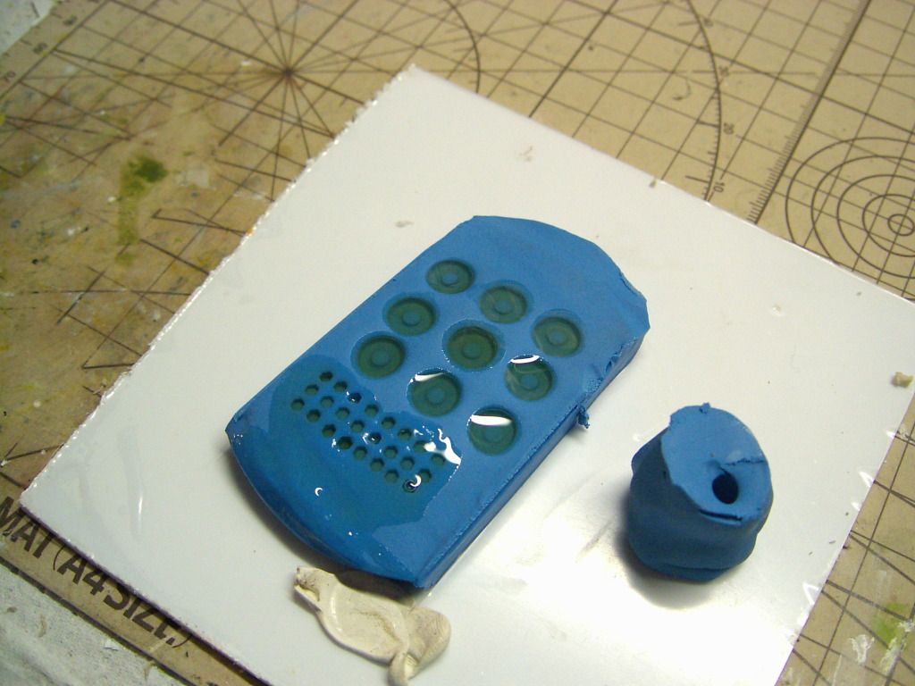 dato che ero sprovvisto di parti circolari piatte x fare le estremiotà che racchiuderanno la molla,ho pensato di farli in resina colando su della plastilina a cui avevo dato la forma con la parte superiore del manico delle lime.già che c'ero con una chiave a brugola ho ricavato anche la forma x fare dei dadi che mi potranno servire anche in futuro(chissà).
