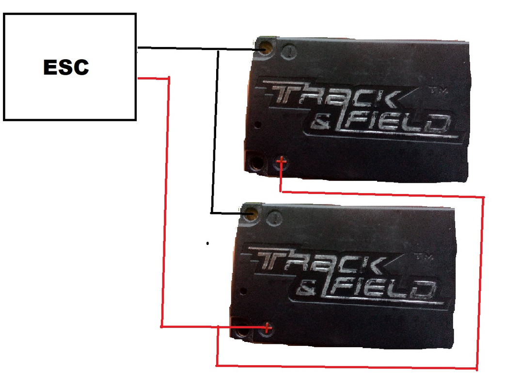 Vanno utilizzate collegate in serie, come se fosse un unico pacco 2S da 7,4V. Altrimenti ti ritrovi con inutili 10.600mAh, ma a 3,7V.