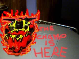 Le ho fatte a bombola con lo stencil...prendi un pezzo di nastro di carta e lo metti tipo su un tavolo;ci disegni le fiamme x circa la larghezza della mini poi ripassi le linee col taglierino;Stacchi la parte superiore e facendo attenzione a non lasciare spazi e bolle d'aria la applichi sulla carrozza premendo bene;copri il resto della carrozza e passi con lo spray; nella foto l'avevo appena verniciata!!! poi asciugata togli lo scoc e la sistemi con i riflessi col bianco...Ovviamente in questo modo si puo fare qualsiasi tipo di "aerografia" !!!!