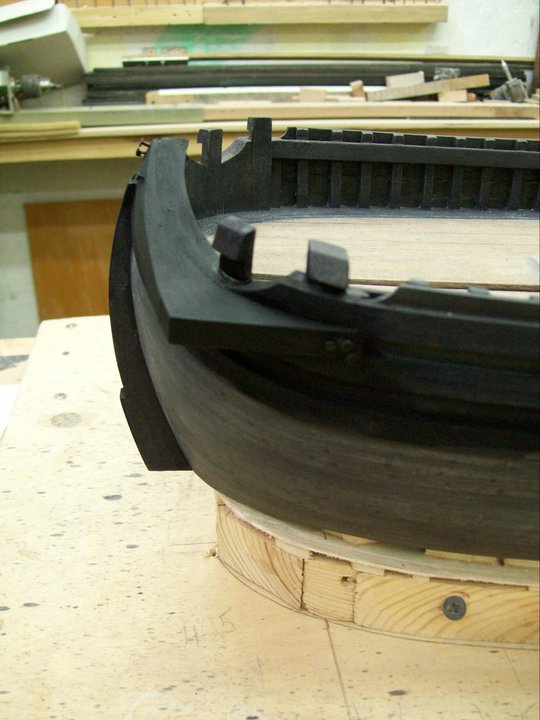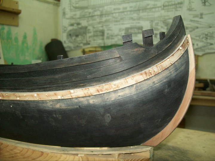 Con questo modello ha voluto provare alcune particolarità di questa tecnica. Ma non tutte. Per cui prua e poppa non le ha fatte in arsenale, ma con tecnica mista.