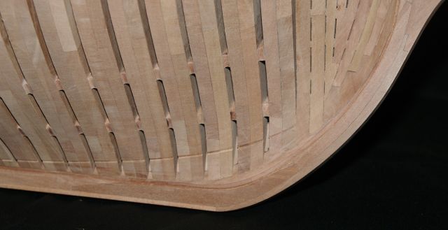 nell'esubero degli scalmi è incollato un listello per tenere fermo itutto l'accostolato, esubero che poi verrà eliminato al momento della messa in opera delle cinte e dei listoni modanati