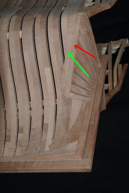 si nota il secondo e terzo ordine di chiavi e la battura modificata nella zona della ruota di prora, del dritto di poppa ed il canale delle biscie che vedremo meglio nelle foto che seguiranno