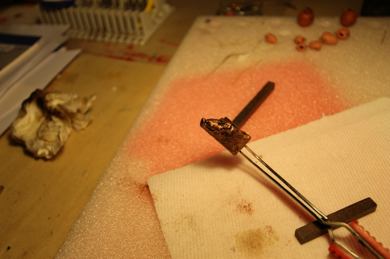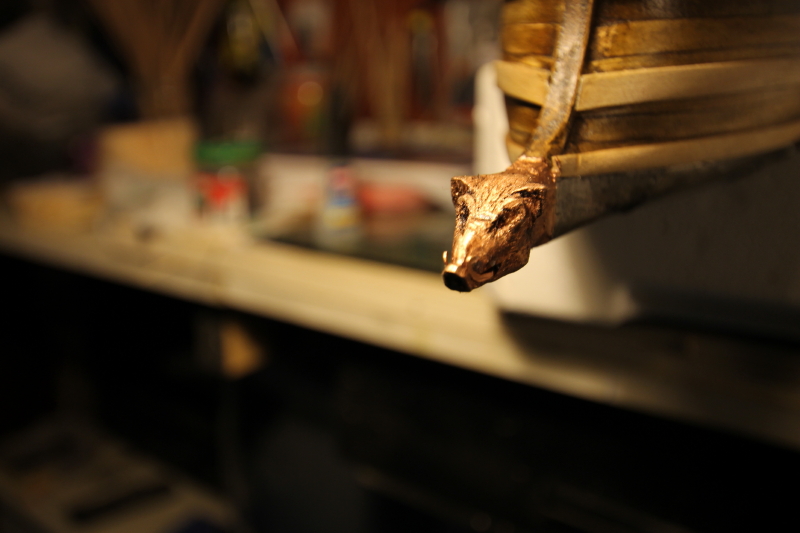 si dice, nella monografia che fosse di rame ( metallo, che gli etruschi estraevano nella miniera di Caporciano), nel cercare il materiale, sia per informazioni storiche sia per gli stimoli "creativi" ho trovato le foto di un rostro etrusco riportante proprio la testa di un cinghiale, ma in questo caso il metallo è bronzo e il profilo stesso della testa è diverso rispetto a quello prodotto nella monografia (e che in parte ho copiato) Allegato 255927 si tratta di un reperto recuperato in mare (isola d' Elba) fa parte della collezione Galleria Beaumont - armi archeologiche comunque ammesso che il materiale potesse essere anche rame la forma era diversa rispetto a quella proposta nella monografia, per cui ritenevo opportuno o rifarla oppure rimodificarla. Per riportare la testa del cinghiale, realizzata con il cirmolo a rame, ho utilizzato la "polvere di bronzo", si tratta di una polvere sottilissima fatta dai metella stessi, per darla prima si da sul soggetto da lavorare la "missione" che sarebbe la base , poi si cosparge con un pennellino la polvere, dopo qualche minuto si ripasa con un pennello asciutto, portando via l' eccedenza, il risultato è "spettacolare" paragonabile alla foglia d' oro, ma di piu' facile realizzazione, i fregi , gli ornamenti delle navi fatti con la polvere (oppure, se riesce con la foglia) non sono paragonabili per bellezza, per luce e riflessi, a quegli dipinti (provare per credere) dopo per far risaltare e invecchiare si puo' passare la superfice con il bitume, dandolo e passando con uno straccio, allego un po' di foto (la marca della polvere è puramente indicativa, in questo caso ho utilizzato il rame, si trova per diversi metalli, costa 7%8 € un barattolino , ma di fregi e cornici ce ne fai un monte) Allegato 255918 Allegato 255919 Allegato 255920 Allegato 255921 Allegato 255922 poi ho rifatto le zanne al cinghiale, guardando quelle del rostro in bronzo, utilizzando del filo di rame, e ribattendolo con il martello sulla incudine "casareccia" Allegato 255923 Allegato 255924 Allegato 255925 Allegato 255926 insomma, era meglio che prima, ho deciso di mantenerlo fissandolo definitivamente sul dritto di chiglia, con questa vi saluto, luponero |
