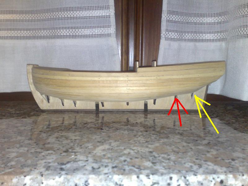 2) L'ordinata evidenziata in giallo è troppo alta e pertanto è necessario togliere gli ultimi due listelli e togliere materiale dall'ordinata stessa 8lavoro più complicato).