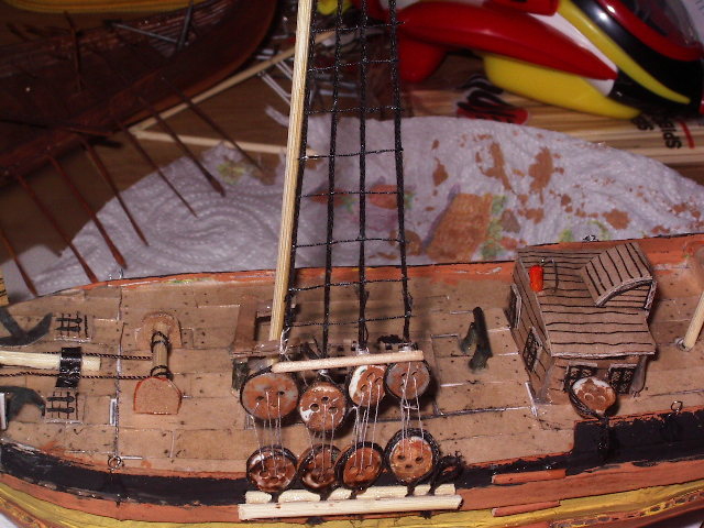 Posso fare solo un piccolo appunto (ma va bene comunque), i pennoni e i boma erano da colorare di nero, ormai pero' vedo che avete gia' fissato le vele, quindi va bene cosi'!