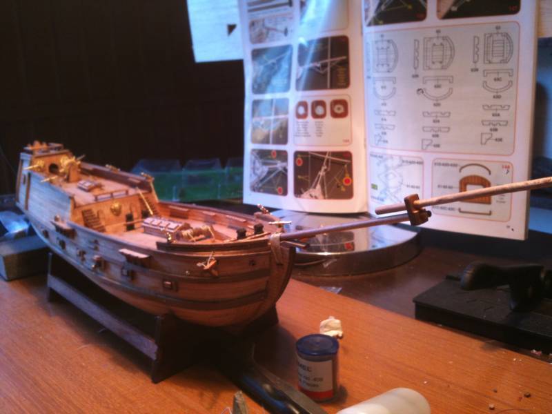 Grazie monet intanto,per la gru di capone cosa mi consiglieresti di fare?Per i saboldi sto effettivamente pensando di rifarli vedrò cosa riesco a fare ho prolungato l'alloggiamento a prua (scusa non conosco il termine tecnico) dell albero di trinchetto con un lisellino di noce da poterci alloggiare la polena che cercherò di creare,per la chiglia è che purtroppo ho gia montato e legato l albero di trinchetto e snodarlo mi sa un po fatica,posso provare a carteggiarlo e tingerlo con un colore ad olio scuro(che mi consigli?)