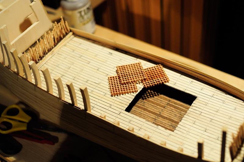 Ero in dubbio se togliere solo il primo supporto del secondo ponte o fare piazza pulita di tutto. Alla fine ho optato per la seconda scelta. Inserirò dei nuovi quinti e nuovi supporti per il secondo ponte con le modalità della costruzione d'arsenale (senza offesa per i modelli d'arsenale: il mio lavoro a confronto è solo legna da ardere! )