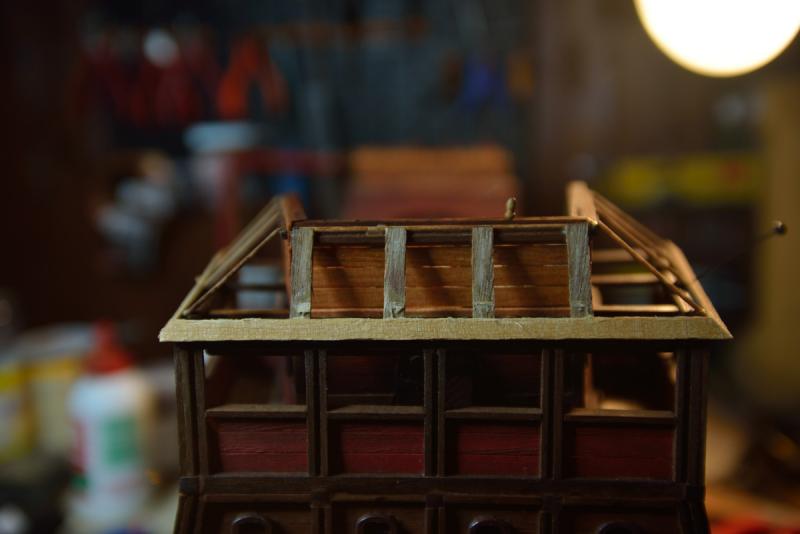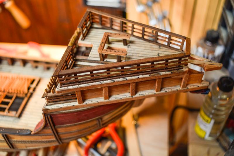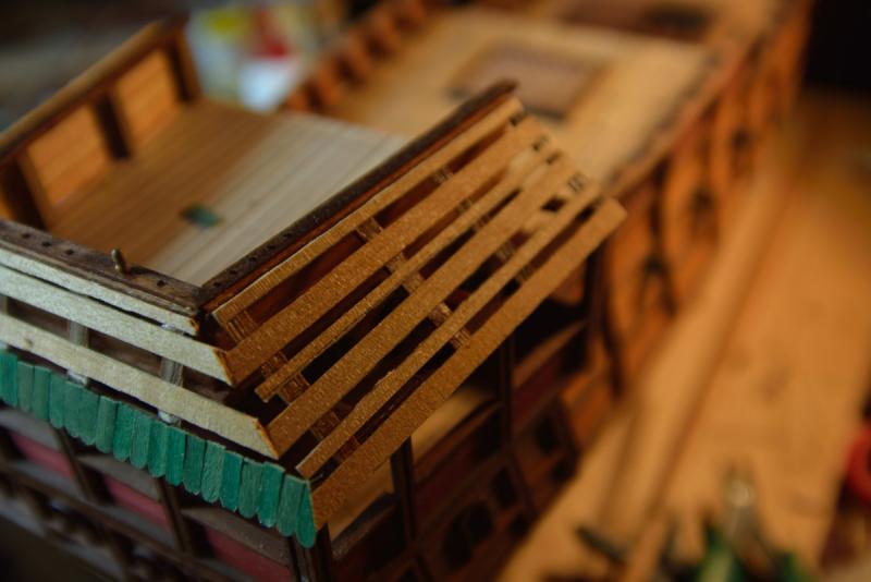 Ero in dubbio se togliere solo il primo supporto del secondo ponte o fare piazza pulita di tutto. Alla fine ho optato per la seconda scelta. Inserirò dei nuovi quinti e nuovi supporti per il secondo ponte con le modalità della costruzione d'arsenale (senza offesa per i modelli d'arsenale: il mio lavoro a confronto è solo legna da ardere! )