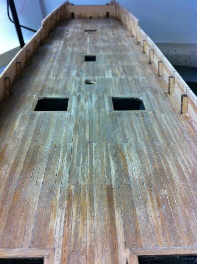 Poi ho terminato il fasciame dal primo ponte in su, carteggiato tutto e con le fine in cartoncino ho ricavato tutti i portelli! Ora la parte più rognosa! Aprirli!!!!! Anche perché il fasciame è da 2 mm!