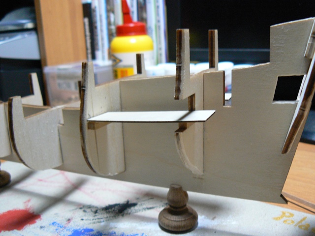 Qualche settimana fa avevo montato i falsi ponti per i cannoni nel cassero...