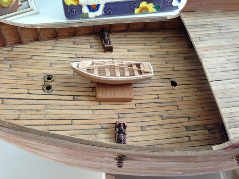 i remi sono di buona fattura,nulla da dire,sei anche su una scala piccola percio' non si possono fare miracoli. in merito al timone,credo che non lo avesse,in riferimento alla ceravella in questione,mi risulta che era la tipica e semplice scialuppa.