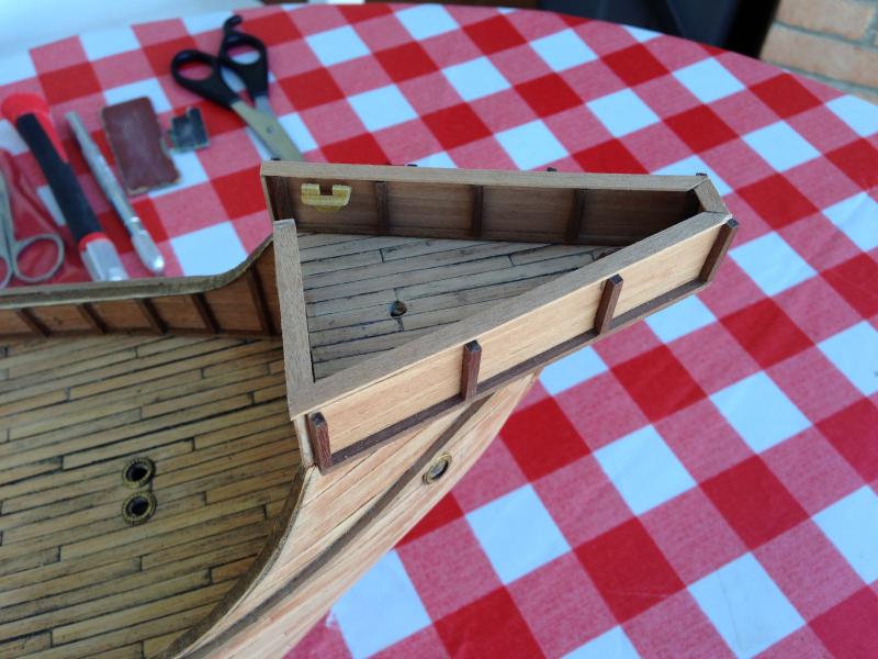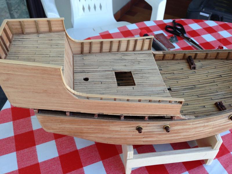 anche questo cantiere procede, ho messo i parabordi e realizzato paiolato sul cassero: