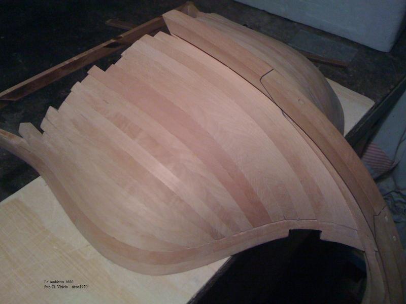 In questa foto si può vedere l'avanzamento del lavoro a poppa e prua, in pratica la messa in opera dei quinti dalla zona poppa e zona prua verso il centro scafo.