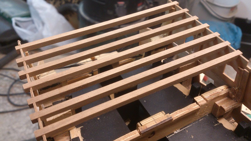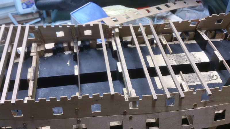 Quindi non essendomi fidato della scatola di montaggio, cerco di allestire il modello come doveva essere in realtà e che solo Boudriot e Lemineur possono dire la loro con cognizione di causa. I ponti di batteria erano pertanto paralleli alla linea di galleggiamento forse un po' imbarcati di più verso poppa e meno verso prua (cavallino) soprattutto sul ponte di coperta. Credo che i ponti di batteria la Sergal li abbia realizzati abbastanza giusti sono solo il ponte di coperta e le ordinate in legno tagliati al laser completamente sgangherate rispèetto ai piani del cartaceo. Ne sanno qualche cosa Zenit e Gracia.