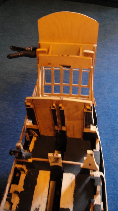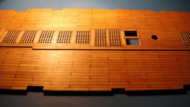 Oltre ad essere maldestro, mi succede che pure la scatola di montaggio presenta particolari che non combaciano. Lo specchio di prua dovrebbe avere una forma concava, ma questo è impossibile in quanto è stato ritagliato parallelo alle fibre del compensato che non si possono curvare, mentre il ponte di polena è stato ritagliato perpendicolare alle fibre e quindi può flettersi ma questo è un danno perchè per farlo rimanere dritto bisogna rinforzarlo. Amen mantengo lo specchio di prua dritto perchè se lo piego si spezza e rinforzo il ponte di polena. Credo che sia un errore di chi ha predisposto i vari pezzi e forse è capitato solo a me!