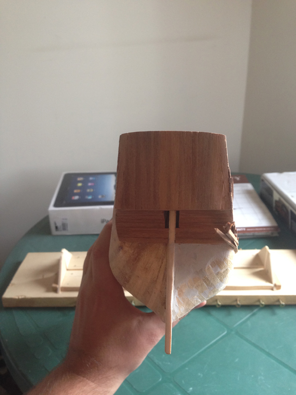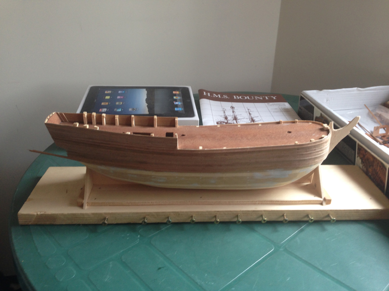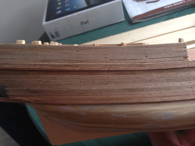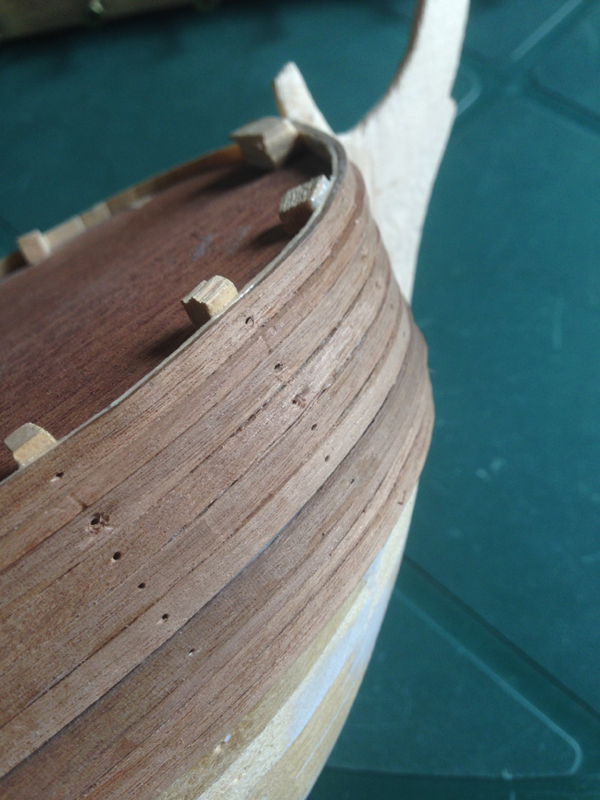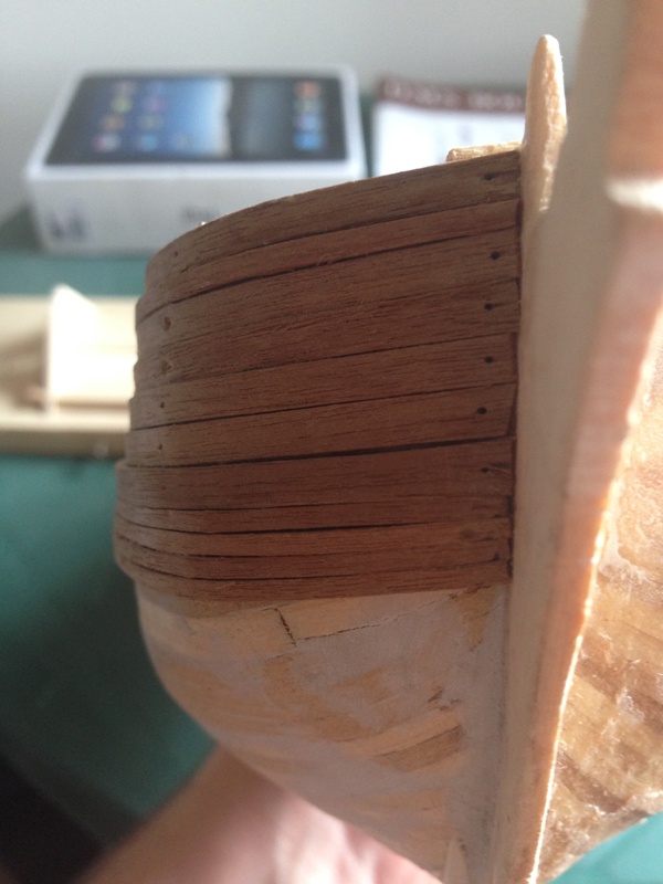 Il modello lo cominciai un paio di anni fa, poi lasciato nel dimenticatoio per mancanza di tempo. Ho messo il primo fasciame, stuccato il tutto, e stavo procedendo con il secondo.