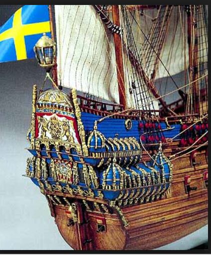 La Vasa della Corel non differisce molto dalla vera nave, certo non ci sono i 780 fregi, ornamenti, statue di quella vera e i fianchi erano dipinti in azzurro prima che si scoprisse che in realtà erano rossi. Segui il modello Corel e dipingi in rosso dove è indicato l' azzurro e avrai un modello il più possibile simile al vero. Anche le bigotte delle sartie erano dipinte in rosso MINIO, colore impermeabile già noto in epoca romana.