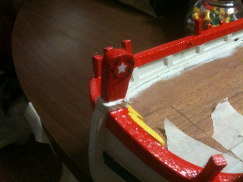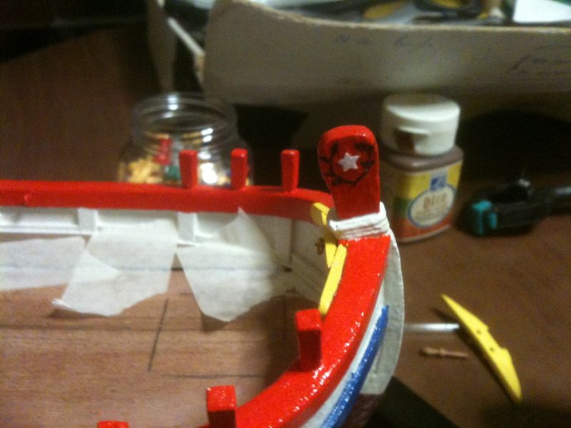 Mi accingevo a realizzare gli occhi apotropaici tanto cari a Madame quando ho notato un errore nel mio modello , il "collo" che sovrasta la ruota di prua nel mio modello è decisamente troppo corto . Allego una foto dell'originale dove si vede la forma più slanciata , dovrò "decapitare" la mia paranza e trapiantare una nuovo pezzo , prossimamente le foto del pre epost operazione !!!
