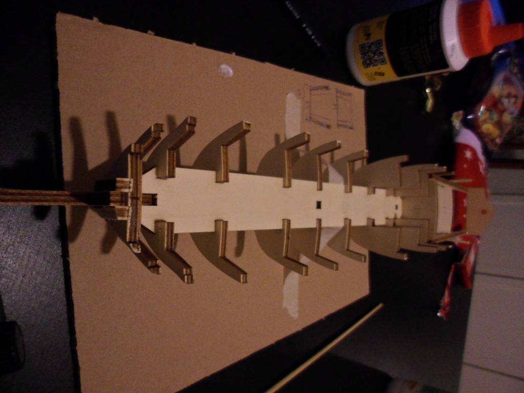ho incollato tutte le ordinate, ora sto lavorando sui longheroni di poppa per dare la giusta inclinazione.
