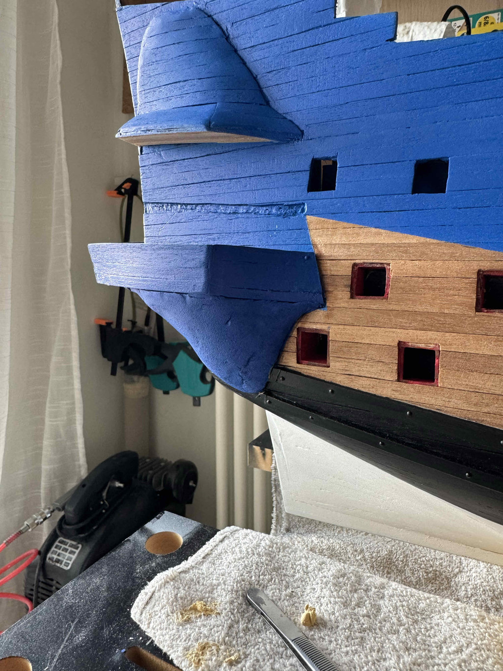Piccole imperfezioni saranno sistemate in corso d’opera e credo che non si vedrà niente una volta completata tutta la parte delle decorazioni, degli incintoni, delle sovrastrutture, della parte di prua.