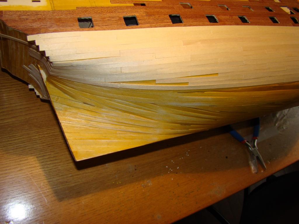 Ieri ho provato a documentarmi per quanto riguarda il fasciame a poppa e le foto che ho trovato non mi sono state di grande aiuto. Per adesso lo lascio così in attesa di trovare qualcosa di più utile. Per ora preferisco proseguire col resto del fasciame e lasciare quella zona per ultima in modo da avere più tempo per documentarmi e decidere.