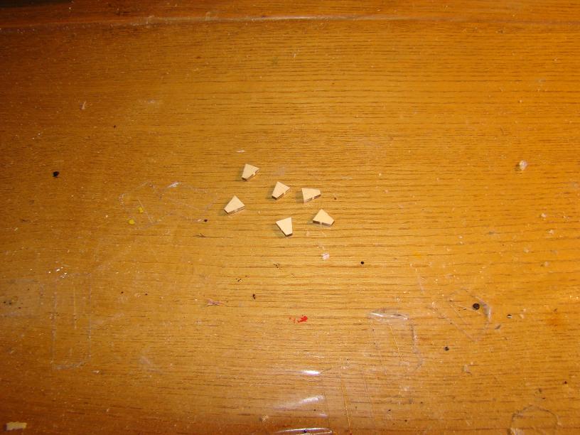 Ho incollato, sempre con colla vinilica, il pezzo a copertura del riempimento e ho stretto il tutto nei morsetti (foto 1). Quando la colla si è asciugata ho limato il pezzo in modo da far assumere ai bordi dei 2 pezzi orizzontali la stessa inclinatura dei 3 pezzi verticali (foto 2). Infine ho incollato il pezzo a chiusura (foto 3) e a colla secca l'ho limato in modo da livellarlo ai 2 pezzi orizzontali (foto 4). Poi ho incollato con colla vinilica questo riempimento alla poppa del modello (foto 5). Dalla fustella del fascicolo 39 (foto 6) ho staccato i 6 pezzi numero 79 (foto 7) e li ho rifiniti con una lima. Successivamente ho provato questi pezzi nei punti dove andavano incollati andando poi a limarli in modo da farli aderire perfettamente al fasciame. Quando l'inclinazione raggiunta è stata la corretta li ho incollati come indicato nelle istruzioni (foto 8 e 9).