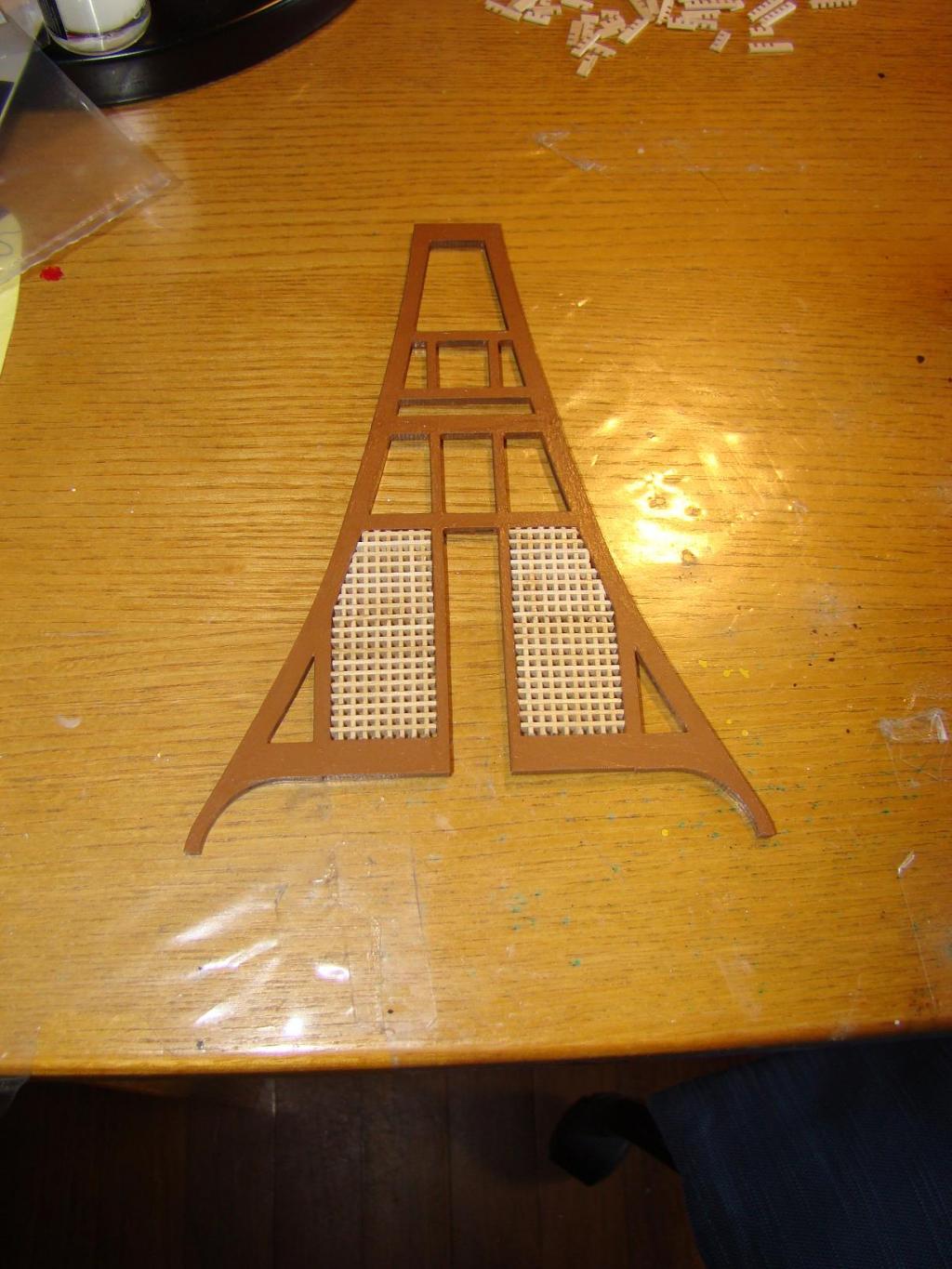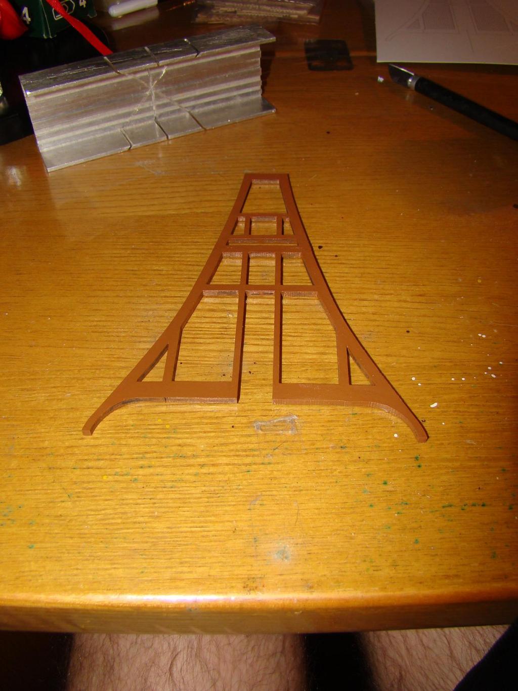 Poi ho preso la piattaforma dello sperone di prua completata nel fascicolo precedente (foto 3) e l'ho verniciata con color simil-sapelli (foto 4). A questo punto ho preso il disegno della piattaforma e i pezzi del paiolato contenuti nelle uscite 40 e 41 (foto 5) e ho provato a montare il paiolato. Proprio montando i paiolati mi sono accorto che i pezzi forniti nei fascicoli non erano di buona qualità e gli incastri non tornavano perfettamente, addirittura gli incastri non avevano nemmeno la stessa distanza l'uno dall'altro e quindi ho deciso di realizzarli utilizzando dei paiolati che mi erano avanzati dai miei precedenti modelli e ho lasciato stare quelli contenuti nei fascicoli. Prima ho realizzato i 2 più grandi (foto 6) e successivamente tutti gli altri (foto 7). Quando tutti i paiolati erano in posizione sulla piattaforma ho passato una mano di vernice trasparente X22 della Tamiya. A vernice secca ho incollato con un leggero strato di colla cianoacrilica tutta la piattaforma sullo sperone di prua stando attendo a farla aderire bene a tutti i sostegni (foto 8).