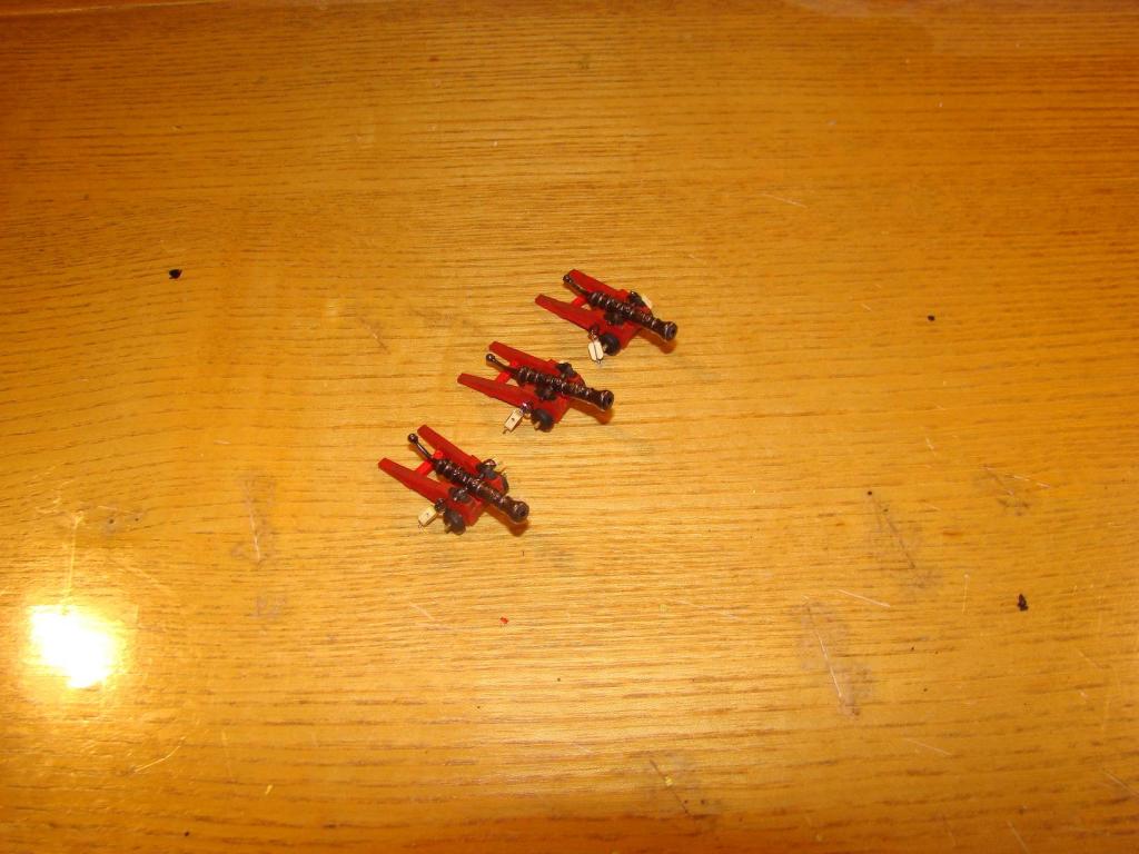 Il montaggio prevedeva la realizzazione di 3 cannoni che non sto qua a descrivere perchè già ampiamente analizzato in precedenti interventi. Il risultato del lavoro lo vedete nella foto 2. Oltre ai cannoni ho legato anche 8 bozzelli con legatura a doppio occhiello con golfare compreso (foto 3).