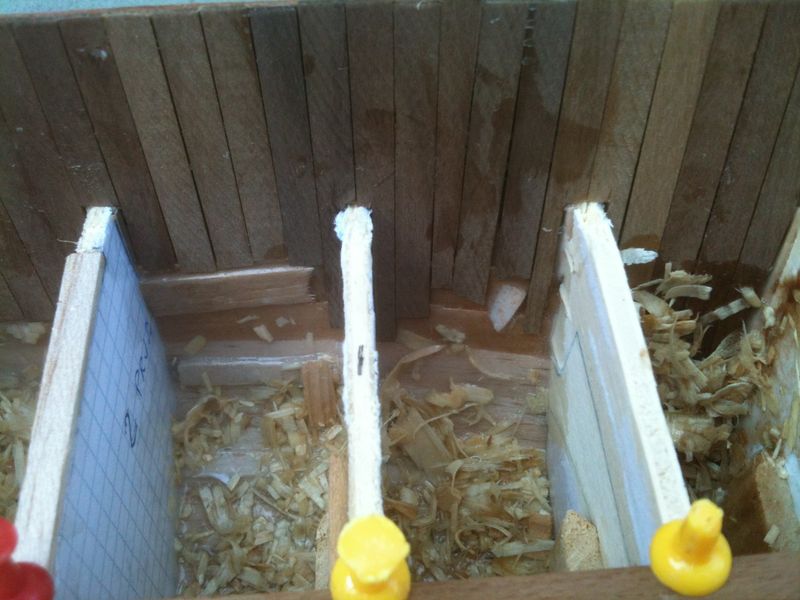 2) ho collocato questi spezzoni sulla parte poppiera della chiglia , questo mi ha dato un punto di appoggio per fissare i listelli .