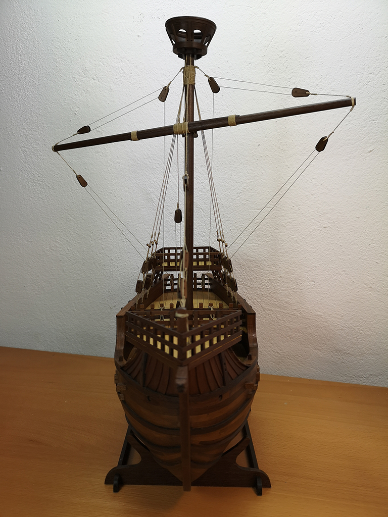 x cervotto: grazie mille per l'intervento. Penso proprio che sia come dici tu: utilizzavano scale posticce là dove era possibile e, dove non lo era, probabilmente vi erano tarozzi o qualcosa che facilitasse l'arrampicata e il passaggio da un ponte ad un altro. Anche l'accesso alla coffa non doveva essere agevole visto che non vi erano buchi del gatto o ausili vari che ne permettessero un facile accesso. x De Ruyter: sono contento se, in qualche modo, ti sono stato di aiuto. Continuo a seguire il tuo WIP e mi sembra che la tua Coca stia venendo veramente bene. Continua così! A presto metterò altre foto d'insieme della mia cochina e sto pensando alla realizzazione di una teca dove poterla sistemare e porre al riparo dalla polvere. Accetto suggerimenti in merito. Massimo |
