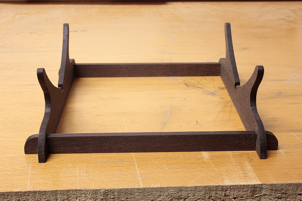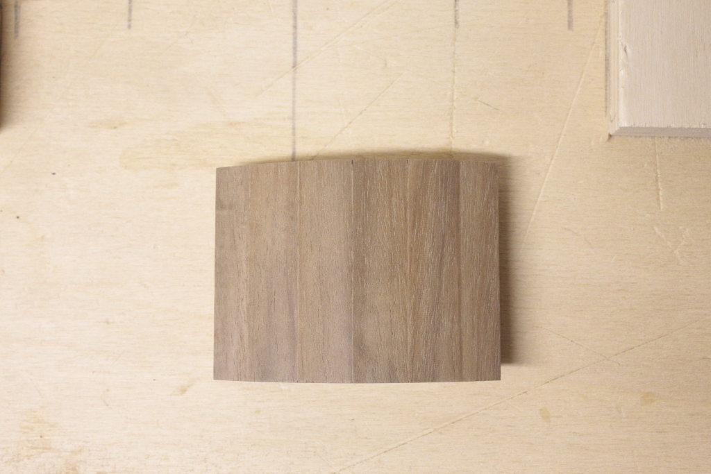 Dato che l’MDF in bella vista a me non piace, ho deciso di ricostruire la base utilizzando una tavoletta di noce di 4mm di spessore. I pezzi in MDF li ho usati come sagoma per ritagliare i nuovi elementi in noce. Le foto seguenti mostrano il risultato della ricostruzione della base dopo l’incollaggio e l’applicazione di una bella mano di olio paglierino.