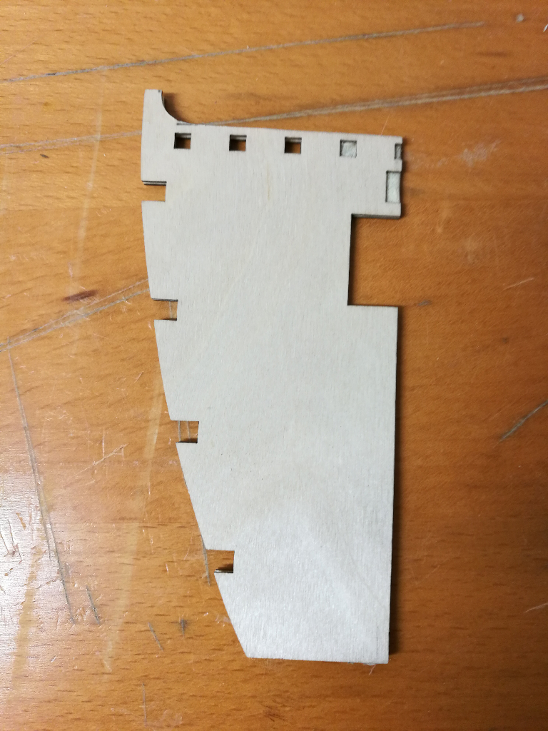 Dopo la costruzione della base sono finalmente passato alla realizzazione del primo fasciame. Si inizia sistemando i due pezzi di compensato che costituiscono le murate esterne e su queste parti occorre effettuare le modifiche che elenco di seguito: