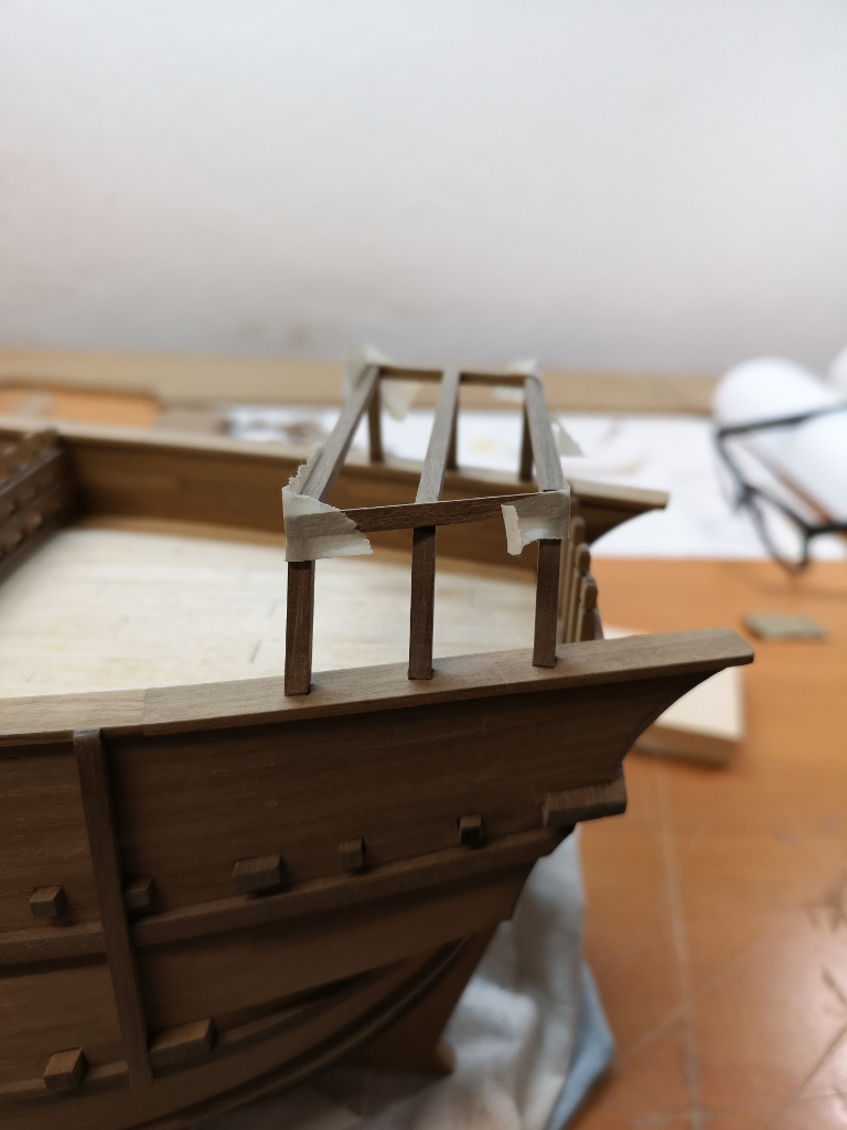 Nel realizzare il mio modello ho cercato di ispirarmi alla Coca di Matarò la quale non ha le aperture per accedere ai ponti di prua e/o di poppa. Per quanto riguarda le scale di accesso ai ponti superiori ti posso dire che anche queste non sono presenti sul modello di Matarò (per come è conservato adesso al Museo Marittimo di Rotterdam) ma non è escluso che originariamente vi fossero. Tieni conto che il modello ha avuto una vita abbastanza travagliata della quale abbiamo ben poche informazioni e sicuramente ci sono particolari costruttivi del modello che non ci sono pervenuti e sono mancanti: alcuni probabilmente sono andati accidentalmente persi (es. la porta del tambucio), altri invece sono stati rimossi volutamente (e.s. l’albero di mezzana).